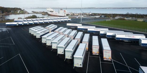 Gracias a la batería integrada en su unidad de control telemática, CTU, Suardiaz podrá comprobar los semirremolques que han sido descargados del ferry y están esperando a ser recogidos en el parking del puerto.