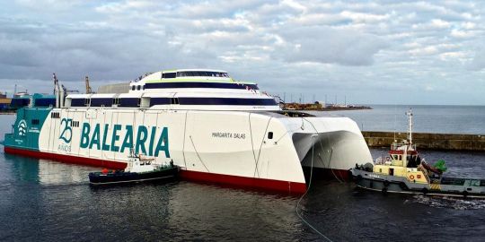 En el año del 25 aniversario de la naviera, Baleària ha efectuado la botadura del fast ferry Margarita Salas en los Astilleros Armon de Gijón, donde está siendo construido. Se trata del segundo fast ferry de la naviera dotado de motores duales a gas, que combina las prestaciones más competitivas del catamarán Eleanor Roosevelt, pionero en innovación y sostenibilidad, con una serie de novedades en el diseño e ingeniería para elevar la experiencia del cliente.
