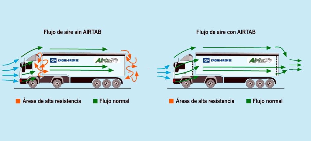 La empresa Knorr-Bremse Ibérica, líder en sistemas de frenado, lanza al mercado el sistema aerodinámico Airtab para vehículos industriales: tractoras, remolques, rígidos, autobuses, etc.