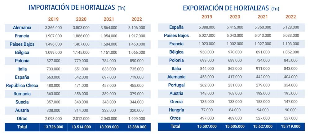 En cuanto a las exportaciones internas dentro de la Unión Europea, también cayeron levemente en 2022, debido a una menor cantidad de frutas exportadas.