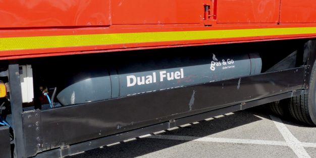 Cuando se opera con gas, los motores utilizan un proceso de combustión en ciclo Otto de mezcla pobre. El sistema monitoriza electrónicamente la cantidad adecuada de la mezcla aire + gas, que son premezclados y que se inyecta en la admisión y se combina con el combustible diésel en la cámara de combustión, que actúa como piloto para la ignición del gas natural.