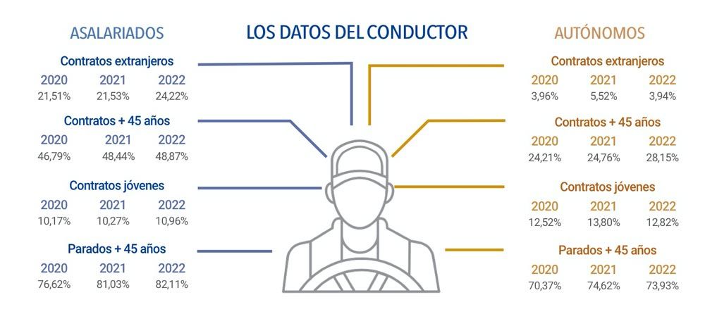 [sumario]Llama la atención el alto número de conductores de camión parados con más de 45 años de edad. Son un 82% entre los asalariados y un 74% de los autónomos.[/sumario]