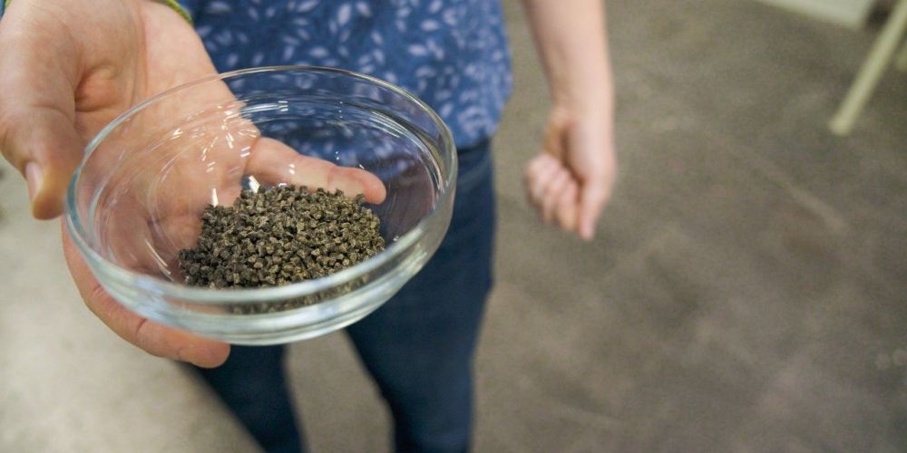 El material, compuesto por un de 40% de fibras y un 60% de plástico de polipropileno reciclado, fue calentado e inyectado en moldes para dar forma a la pieza seleccionada.