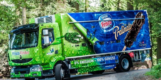 Ambos vehículos serán probados en la distribución de helados y productos refrigerados Nestlé Frisco-Findus en las regiones de Zúrich y Lausana. Con estos dos camiones, ambas compañías dan conjuntamente un primer paso para un transporte más limpio.