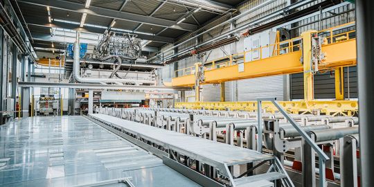En estas instalaciones se producirán los paneles del Kögel Cool Litelshell, la pieza central del nuevo semirremolque para transporte refrigerado del fabricante que utiliza materiales ligeros como bloques fresados de espuma rígida y esteras de fibra de vidrio para reducir la tara y el consumo de combustible, así como para ganar capacidad de carga.