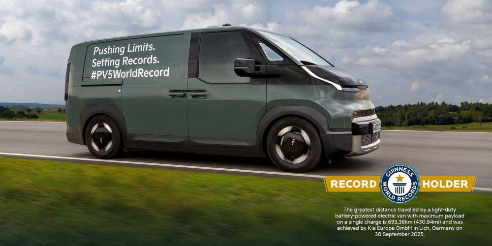 El Kia PV5 Cargo, primer vehículo comercial ligero eléctrico de la marca, ha entrado oficialmente en el Guinness World Records por haber logrado la mayor distancia recorrida por una furgoneta eléctrica ligera con su carga útil máxima, alimentada por una sola carga de batería.
