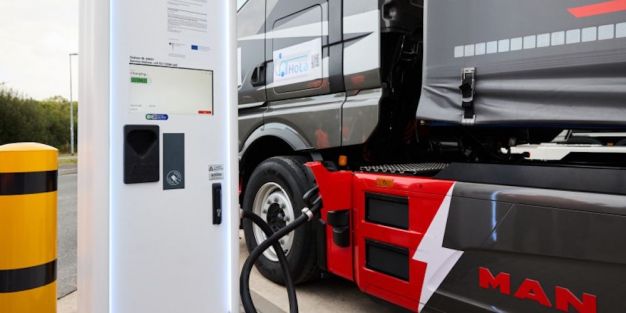 MAN Truck & Bus está construyendo en la autopista A-2 entre Berlín y la cuenca del Ruhr la primera infraestructura continua de carga MCS para camiones eléctricos con baterías. Allí, acaba de poner en marcha el primer punto de recarga público de Alemania con sistema MCS y ha realizado una demostración en directo con un eTGX.
