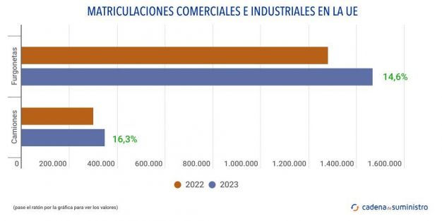 En el año 2023, las matriculaciones de camiones en la Unión Europea experimentaron un aumento del 16,3%, totalizando 346.986 unidades, según datos de la Asociación Europea de Fabricantes de Automóviles, Acea.