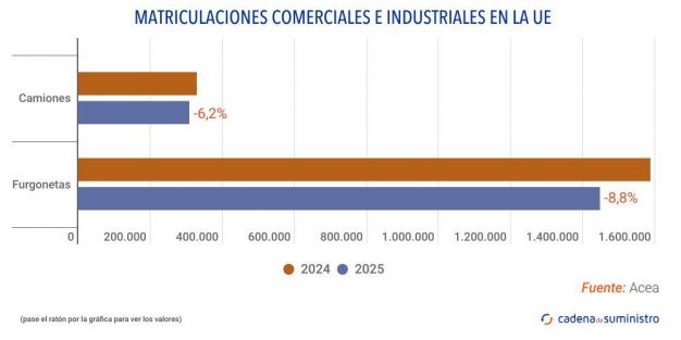 En el año 2025, las matriculaciones de camiones en la Unión Europea se redujeron un 6,2%, alcanzando un total de 307.460 unidades, según datos de la Asociación Europea de Fabricantes de Automóviles, Acea. Esta caída estuvo impulsada por el descenso del 5,4% en las matriculaciones de camiones pesados, junto con una disminución del 9,9% en la demanda de camiones medianos.