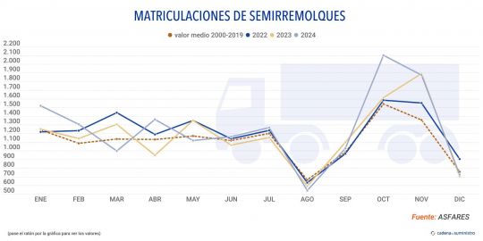 Tras el leve descenso de noviiembre, el mercado español de semirremolques termina el ejercicio 2024 con un incremento significativo.