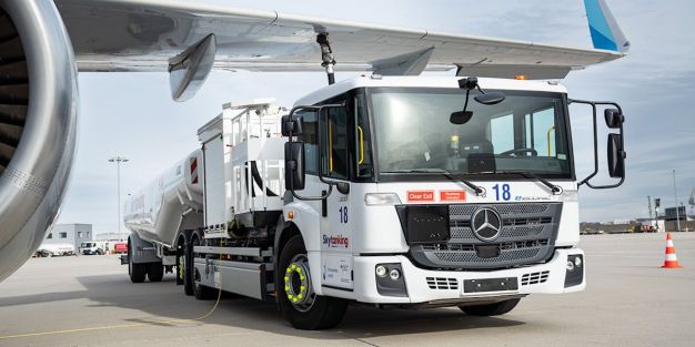 En este caso, el vehículo utilizado es un Mercedes-Benz eEconic, que está siendo demandado para cada vez más aplicaciones. Como camión totalmente eléctrico, el eEconic eRefueller contribuirá a reducir las emisiones durante la asistencia en tierra en el aeropuerto de Stuttgart.