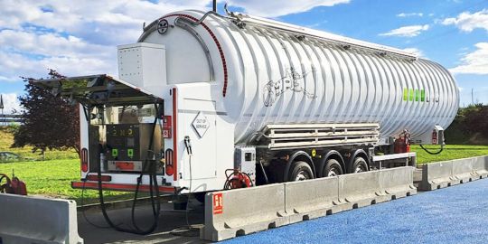La nueva estación de servicio móvil, diseñada y fabricada por Vakuum, dispone de una manguera que permite repostar gas natural licuado (GNL) a camiones y vehículos pesados.