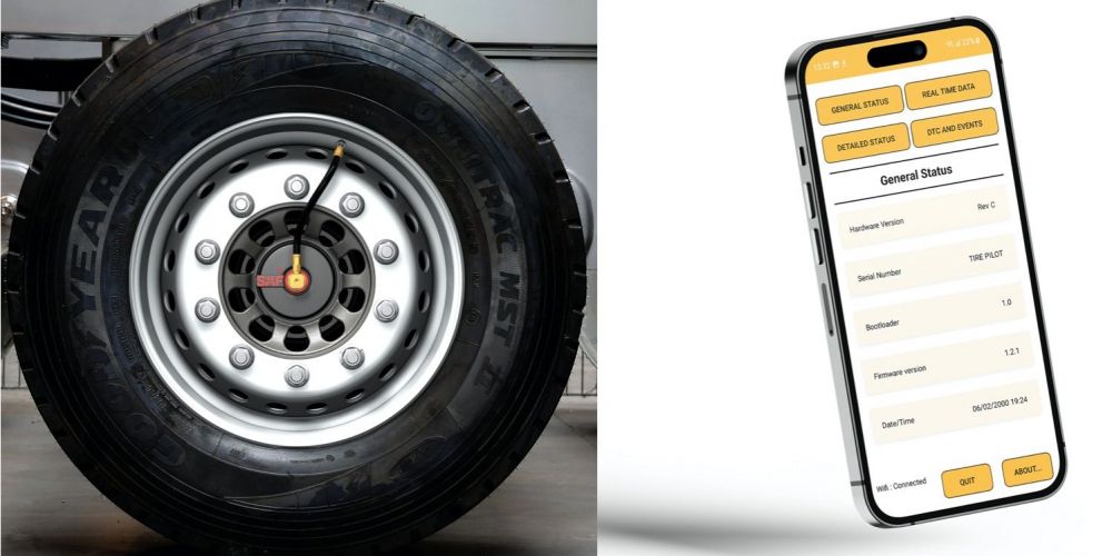 Además del mensaje de advertencia en el salpicadero de la cabina, la aplicación gratuita proporciona datos detallados en tiempo real sobre el estado del sistema. El módulo de control es compatible con todo tipo de semirremolques con neumáticos simples y dobles y con hasta cinco ejes.