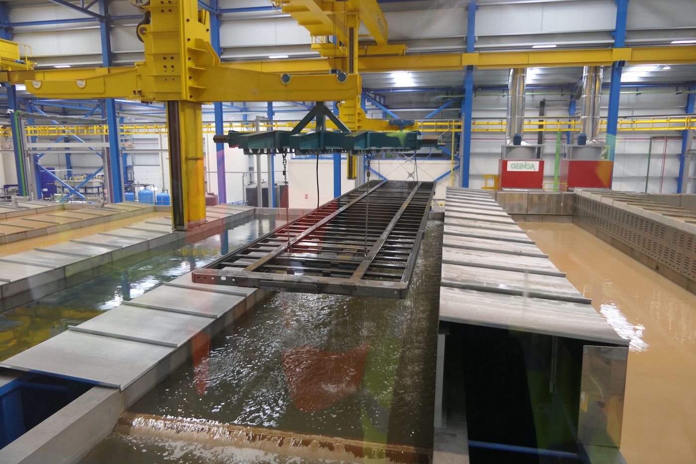 El fabricante nº 1 de semirremolques del mercado español de los últimos 18 años, con la sola excepción de 2014, ha puesto en marcha en sus instalaciones de Casetas una instalación "e-coat" de kataforesis (KTL) para el tratamiento por inmersión de todos sus fabricados, que es la más grande Europa por la capacidad de sus 10 cubas que contienen un total de 210.000 litros.