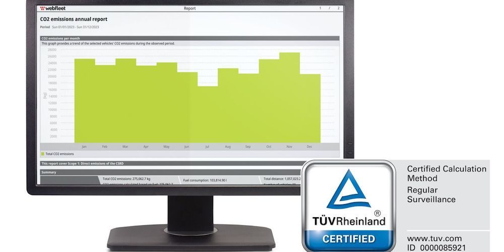 Webfleet, la solución de gestión de flotas de Bridgestone, ha mejorado su herramienta de informes de CO₂ para flotas, certificada por TÜV Rheinland, que permite ahora informar sobre las emisiones directas (Alcance 1) e indirectas (Alcance 2) de los vehículos utilizando métodos de cálculo basados en la distancia y el combustible.