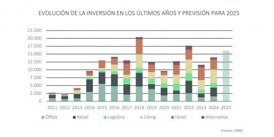 La salida al mercado de producto más Core, de la mano de los sólidos fundamentales del sector, apuntan a una consolidación del crecimiento de los volúmenes de inversión -ya observado en 2024- y suponiendo entre el 10-15% del total.