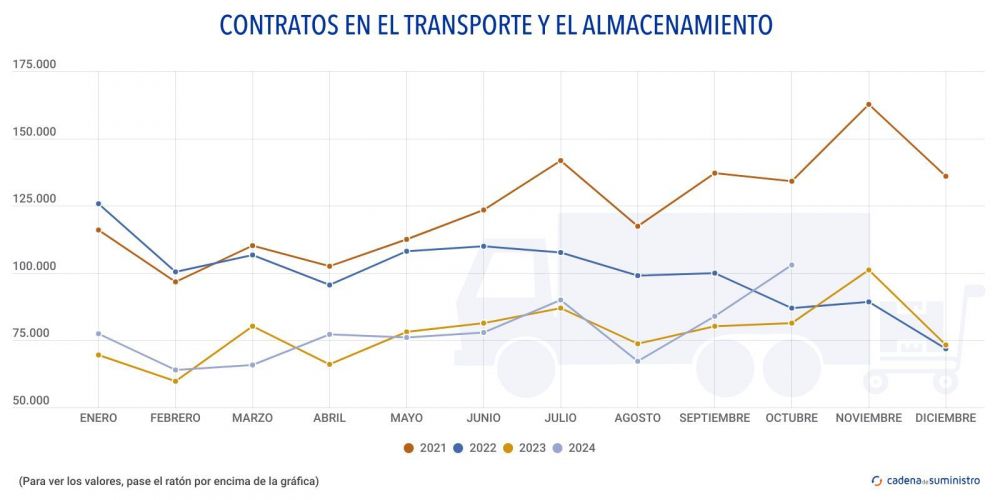 Así pues, durante el décimo mes de este mismo año se han registrado 103.050 contratos de trabajo nuevos en el sector del transporte y la logística, un 26,61% más que en el mismo mes de 2023, así como un 22,73% más que en septiembre de este mismo año.