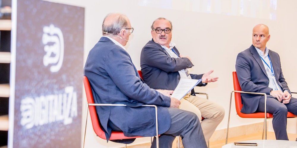 Así mismo, después, Digitaliza'25 ha girado hacia el terreno del transporte de mercancías. En este sentido, Carlos Alfaro, consejero delegado de Transportlive, Félix Santaballa Mateu, consejero delegado de Transportes García de la Fuente, y Ricardo Ochoa de Aspuru, editor de Cadena de Suministro, han repasado cómo Transportes García de la Fuente ha conseguido diversas mejoras en operativa, gestión de personal y optimización del uso de equipos, entre otros aspectos, gracias al uso de la inteligencia artificial de TransportLive.