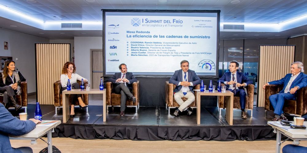 Durnate el evento, la segunda de las mesas redondas se ha focalizado en analizar diversos aspectos relacionados la eficiencia de las cadenas de suministro a temperatura controlada. Esa mesa ha contado con la moderación de Ramón Valdivia, vicepresidente ejecutivo de Astic, también a David Chica, director general de Mercamadrid, Beatriz Valencia, presidenta de Aldefe, Alberto Bueno, gerente de Frozen España, Jesús Cuellar, director de Air Freight de Tiba y presidente de Foro MADCargo, y a Marta Sánchez, CEO de Transportes Frigoríficos Narval.
