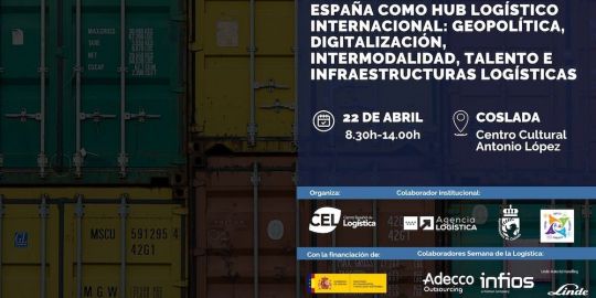 El Centro Español de Logística organiza el miércoles 22 de abril la quinta edición de su Foro de Transporte bajo el título de “España como hub logístico internacional: gepolítica, digitalización, intermodalidad, talento e infraestructuras logística”.