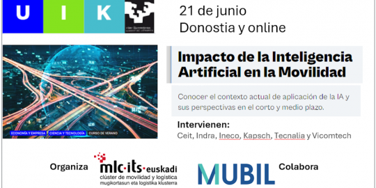 En este contexto, el Clúster de Movilidad y Logística de Euskadi organiza el próximo 21 de junio un curso sobre el 'Impacto de la Inteligencia Artificial en la movilidad', en colaboración con Mubil y la Fundación Cursos de Verano de la Universidad del País Vasco.