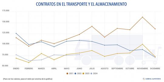 Durante el sexto mes de 2024, se registran crecimientos de la contratación en cómputo mensual, salvo en el transporte terrestre y el aéreo.