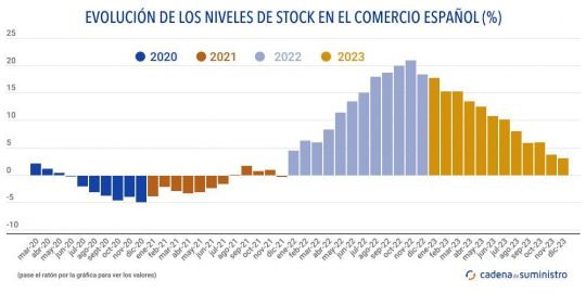 Los niveles de stock del sector comercial español han mantenido su proceso de ajuste durante el último trimestre del pasado 2023.