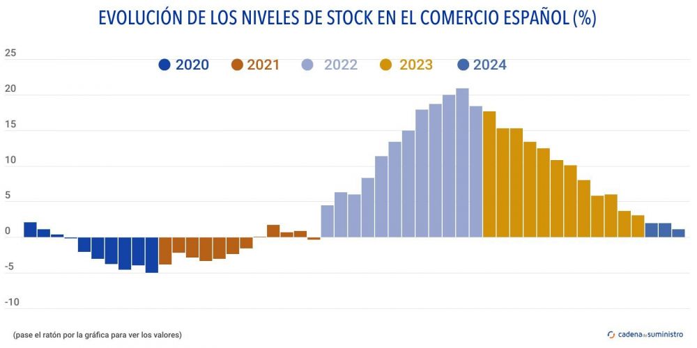Los niveles de stock del sector comercial español han dado un nuevo paso atrás al incio de 2024.
