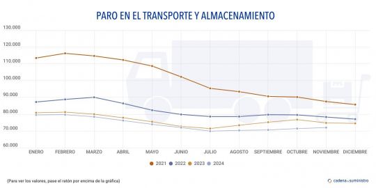 El paro en la logística y el transporte ha aumentado entre octubre y noviembre, al contrario de la evolución que siguió tanto en 2023, como en 2022 y 2021.