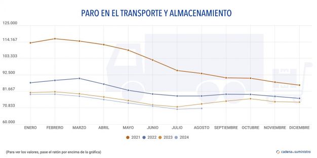 El paro en la logística y el transporte ha aumentado ligeramente entre julio y agosto. Pese a ello, la cifra se sitúa como la más baja de los últimos años para este mes.