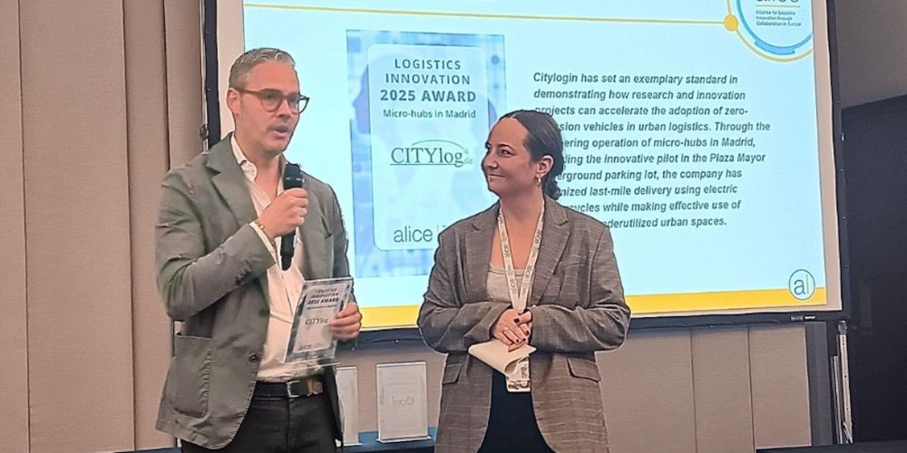 CityLlogin ha obtenido este mes de octubre el 'Urban Logistic Pioneer Award' otorgado por la Alianza para la Innovación Logística mediante la Colaboración en Europa. Alice, por su proyecto de microhub de última milla 100% eléctrico en la plaza Mayor de Madrid.