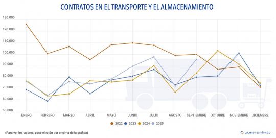 Así pues, en el noveno mes de este año se han registrado 95.621 contratos de trabajo nuevos en el sector del transporte y la logística, un 13,89% más que en el mismo mes de 2024 y un 31,62% más que en agosto de este mismo ejercicio.