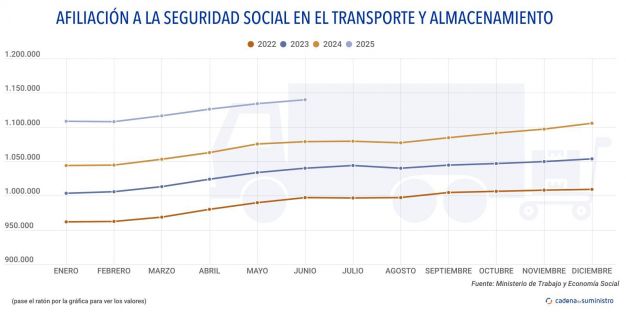 El volumen de afiliados a la Seguridad Social en el segmento de transporte y almacenamiento ha vuelto a crecer en junio.