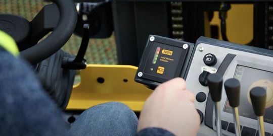 Además, cuando se sobrecarga el equipo, suena una alarma acústica que alerta al operador de la situación y se enciende el indicador instalado en el salpicadero. El operador puede ver rápidamente cuándo existe riesgo de sobrecarga o cuándo las horquillas no están totalmente acopladas por ejemplo, gracias a la señalización de semáforo en verde, ámbar y rojo, para tomar las medidas oportunas.