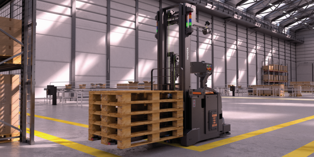 En términos de eficiencia, puede desplegarse para un funcionamiento totalmente automatizado, operando con otras AGV de Toyota, incluidas las carretillas retráctiles automatizadas. De hecho, permite almacenar palets hasta una altura de 5 metros, alcanzando los 12 metros cuando se combina con otras carretillas retráctiles automatizadas de la marca.