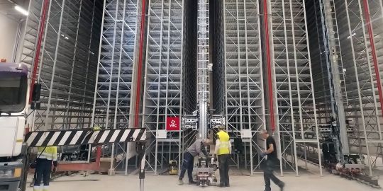Una vez finalizada la etapa de instalación, el proyecto avanzará hacia la fase de pruebas operativas. Durante estos ensayos, se evaluará el rendimiento de los transelevadores, de los transportadores y de las estaciones de picking, con el fin de garantizar que el sistema esté preparado para gestionar un elevado volumen de cajas de forma simultánea.