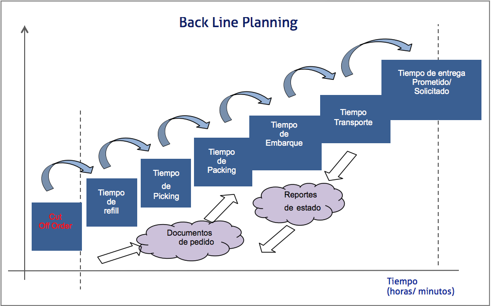 En cuanto a la programación de las operaciones de producción se han desarrollado a partir de sistemas avanzados de MRP, producción sincronizada JIT y programación de flujo orientada a cuellos de botella. Y esto es lo que debería pasar con la programación de las operaciones de almacén, lo que llamamos "Back Line Planning".