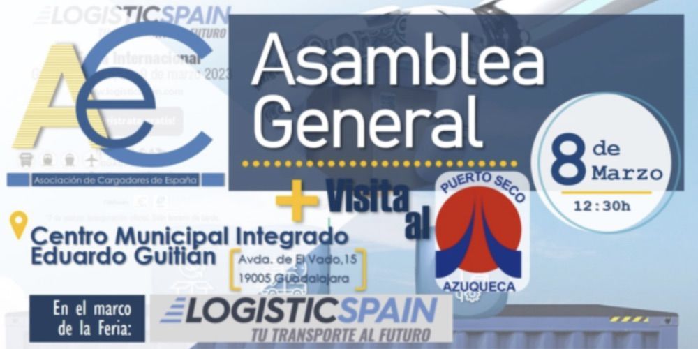 La Asociación de Cargadores de España celebrará el día 8 de marzo de 2023 su próxima Asamblea General, que este año tendrá lugar en el marco de la feria Logistics Spain.