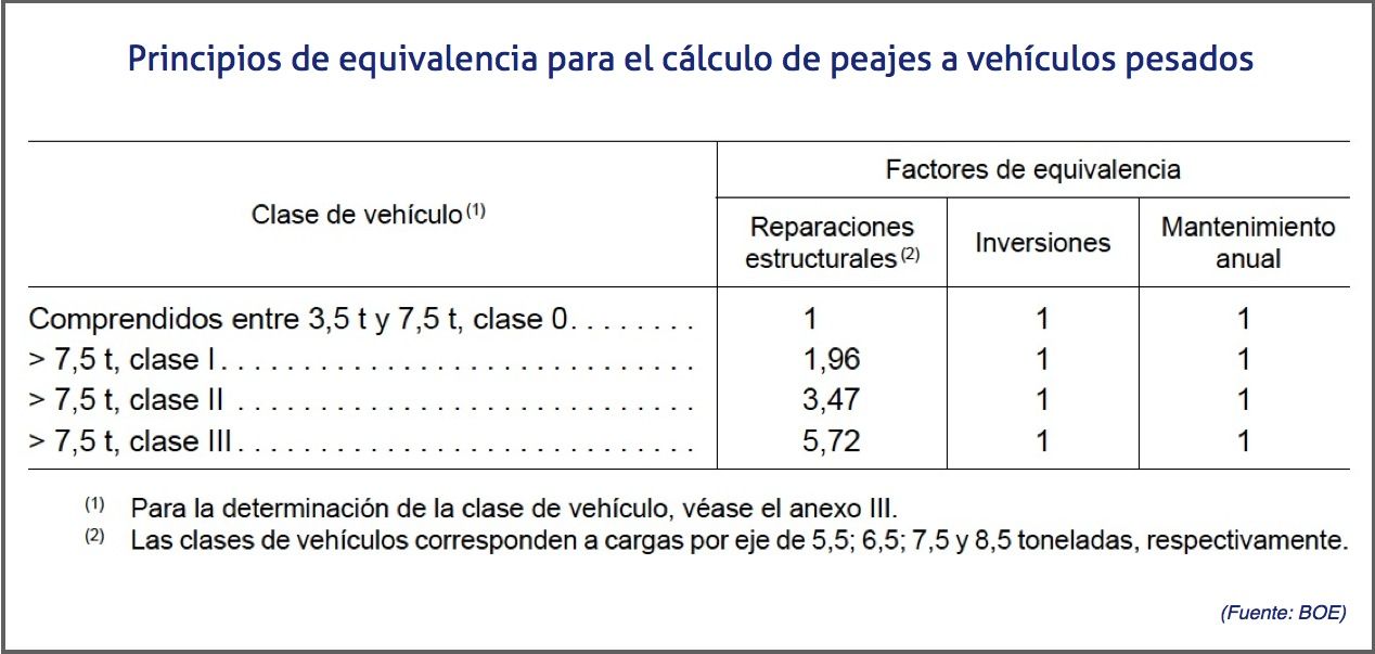 La norma aprobada no supone la introducción de nuevas tasas y peajes por la utilización de las carreteras. Si bien actualiza los criterios que han de utilizarse en el cálculo de los peajes cobrados a los vehículos de transporte de más de 3,5 toneladas.
