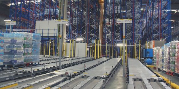 Ante la necesidad de optimizar el espacio disponible a nivel de suelo, la cadena de supermercados ha querido apostar por un nuevo sistema de almacenaje automático en seis alturas y un sistema de transportadores y de electrovía para el transporte continuo de palets.