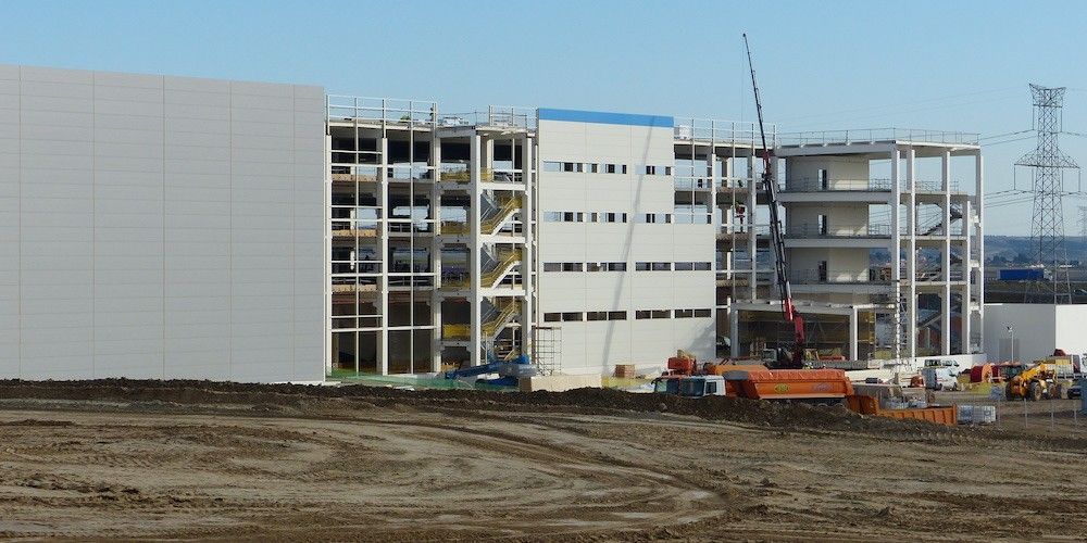 Sobre un suelo de 210.000 m² ubicado en PCI Multimodal, la ampliación de Plataforma Central Iberum que se desarrolla en la localidad toledana de Illescas, la nueva instalación para uso logístico que construye Ferrovial para Amazon llama la atención cuando menos, por su estructura.