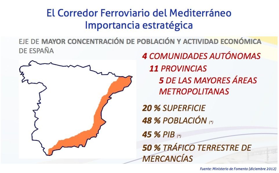 Durante su visita a Castellón este martes para presentar el proyecto para la implantación del ancho UIC en el Corredor Mediterráneo, Pastor ha recordado que el proyecto de implantación de ancho UIC en el Corredor Mediterráneo va a actuar sobre 569,6 km de vías existentes, implantando tercer carril o cambiando de ancho ibérico a UIC, y tampoco ha olvidado recordar que este año se han destinado 1.354,4 millones de euros al Corredor de un total de 6.043 millones de euros de inversión en ferrocarriles, y en 2013 recibirá otros 1.079 millones.