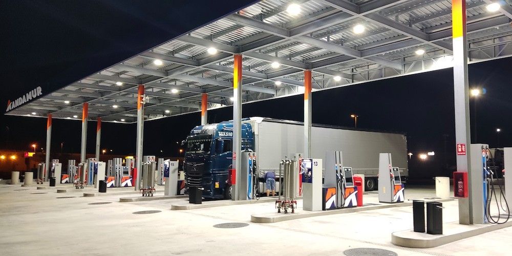 De las siete estaciones de su red nacional, cuatro son estaciones propias. En Guarromán sus clientes pueden encontrar tanto GNL, como GNC y cargador eléctrico, con un total de 10 cargadores y una potencia de 120Kw que permiten cargar el vehículo en 30 minutos. En San Román y en Pamplona, cuentan con cargadores eléctricos con 3 puntos de recarga rápida y con una potencia de 50 Kw, gracias a los que un vehículo eléctrico se puede cargar en escasos minutos: el 80% de la capacidad de la batería queda cubierto entre 15 y 20 minutos.
