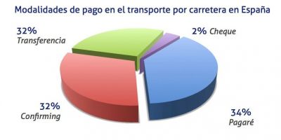 Los resultados del mes de enero apuntan a que el medio de pago preferido por los clientes de los transportistas es el pagaré, un 34%, seguido de la transferencia y el confirming, ambas con un 32%, y el cheque, un 2%.