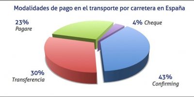 Los resultados de este mes de junio apuntan a que el medio de pago preferido por los clientes de los transportistas es el confirming, un 43%, seguido por la transferencia, con un 30%, el pagaré, con un 23%, y el cheque, con un 4%.