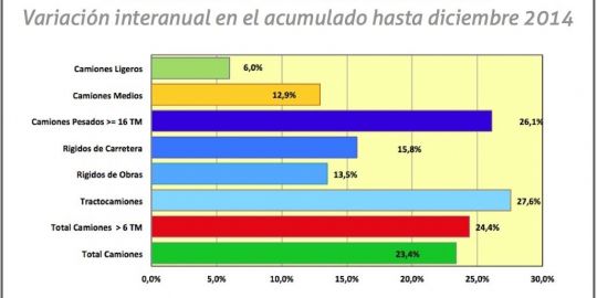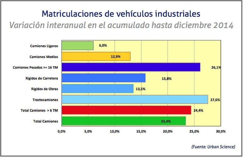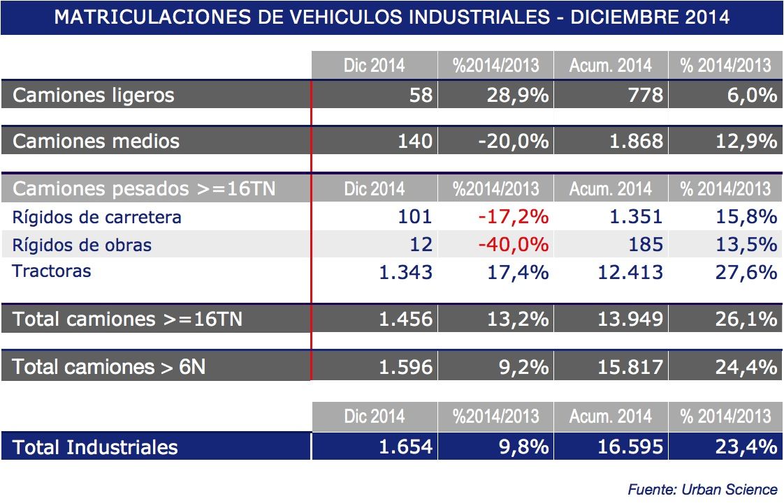 El mercado de vehículos industriales en diciembre ha registrado un aumento del 9,8% en comparación con diciembre de 2013, recuperándose la tendencia positiva tras el descenso en septiembre.