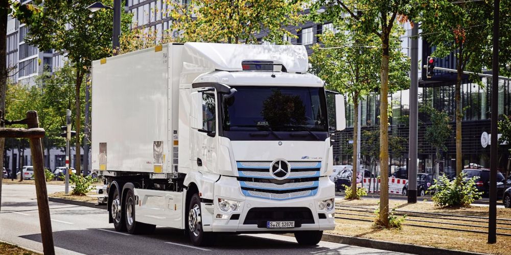 El eActros es un modelo de camión para distribución regional y urbana de entre 18 y 25 toneladas que viene equipado con dos motores eléctricos cerca de cada rueda de su eje trasero, que ofrece una potencia de 126 kW y un par máximo de 485 Nm cada uno y que, además, incorpora una batería de 240 kWh de capacidad que tiene la capacidad de cargarse por completo en un mínimo de dos horas.