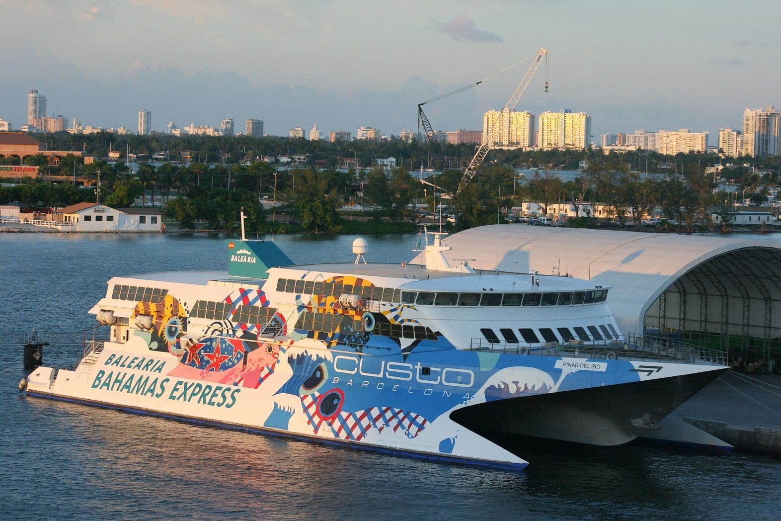 El fast ferry Pinar del Río, que navega a una velocidad de 32 nudos, luce un diseño en el exterior del diseñador Custo y tiene una capacidad para 463 pasajeros y dispone de bar-cafetería, tienda de regalos duty-free y acomodación turista y primera clase entre otros.