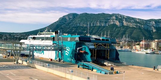 El puerto de Denia ha acogido la presentación en sociedad del 'fast ferry' Eleanor Roosevelt de Balearia, que desde el 1 de mayo conecta la instalación con Ibiza y Palma.