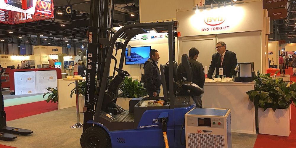 El revolucionario fabricante de carretillas eléctricas BYD, ha llegado al mercado español después de haber resultado ganador del trofeo 'International Forklift of the Year' en la última edición de los premios IFOY, celebrada en el marco de la CeMat 2016 en Hannover, con la BYD ECB18C de tres ruedas, que tiene una capacidad de carga de 1.8 tn. y altura de elevación de 6 metros y que está equipada con baterías de fosfato de litio hierro, completamente libre de mantenimiento y tecnología de carga ultra rápida.